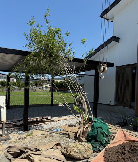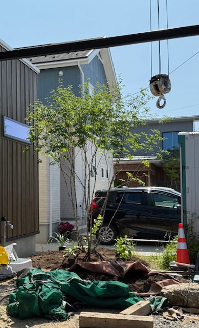 今回の施主様宅に植樹した木は「株立ち」と言って根本から複数の幹が立ち上がった樹形です。