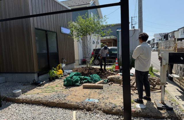 先週の晴れた日、施主様宅の植栽作業に津野も同行させて頂きました。