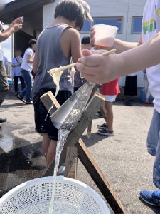 そしてなんと今年は初めての試みで、事務所前で 「流しそうめん大会」 を開催しました!